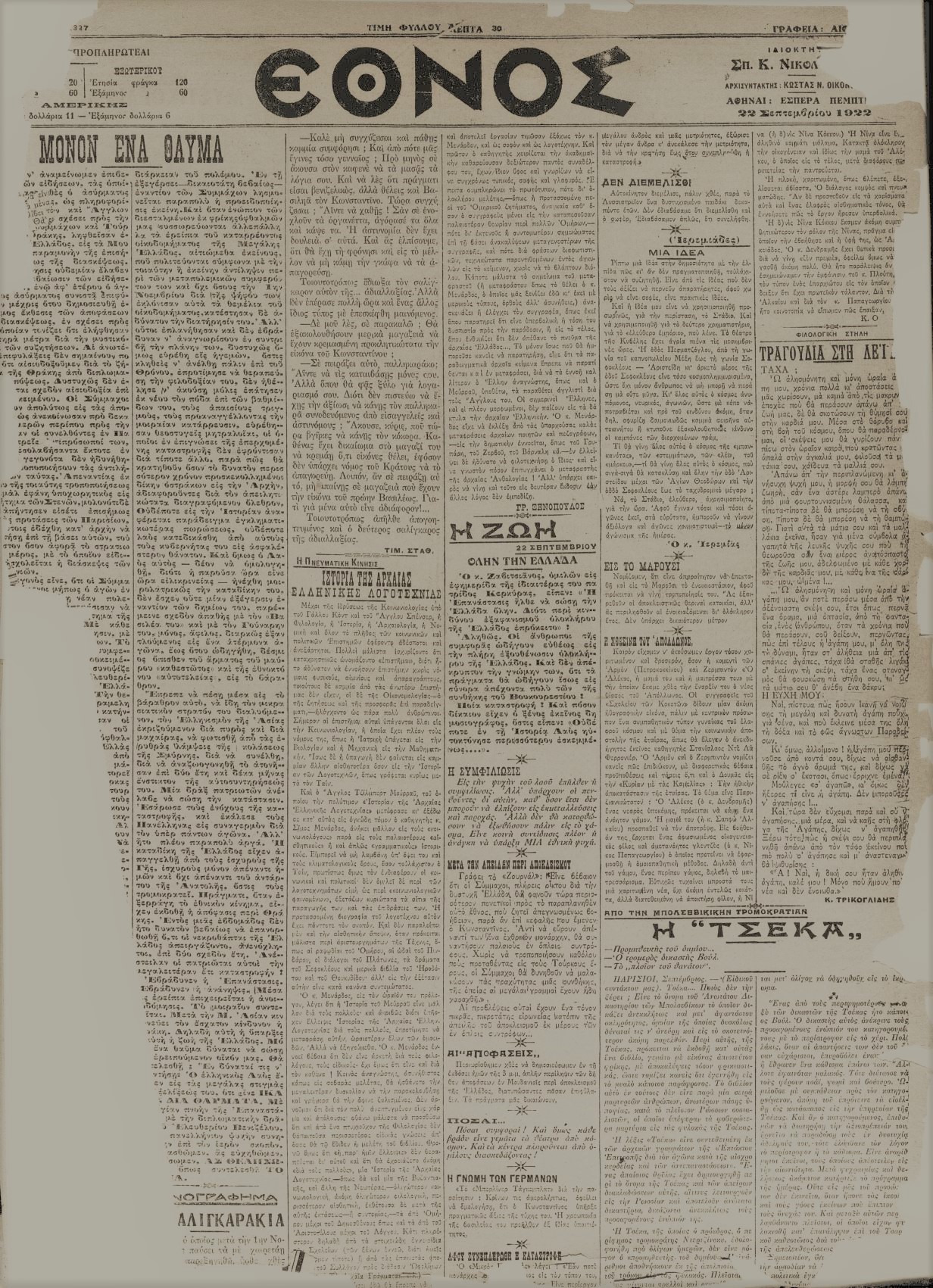 «Η Ευρώπη ολόκληρος εις την Ελλάδα μαχομένην εν Μ. Ασία, κατόπιν μάλιστα συμμαχικής εντολής, δεν επέτρεψε να αποκλείση τα τουρκικά παράλια διά να δυνηθή να αγάγη εις πέρας έναν πόλεμον εκ των ιερωτέρων της Χριστιανικής ιστορίας. Η αυτή όμως Ευρώπη, προκειμένου να νομιμοποιηθή η υπό των Τούρκων σφαγή των Χριστιανών της Σμύρνης, του Πόντου, της Κίου και της Πανόρμου, αναλαμβάνει διά της δυνάμεως των στόλων της να υποτάξη την Ελλάδα, αρνουμένη να προσεπικυρώση διά της παραχωρήσεως της Θράκης εις την Τουρκίαν παρομοίαν κακοήθειαν. Τι συμβαίνει λοιπόν; Ετούρκεψαν οι Χριστιανοί;»