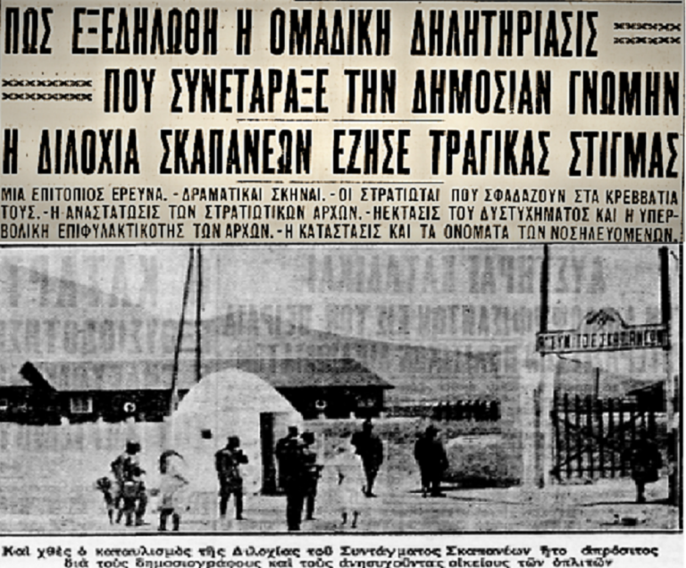 Στις 31 Μαΐου οι εφημερίδες αναφέρονται στην προηγούμενη ημέρα όπου 300 στρατιώτες του λόχου σκαπανέων στην τοποθεσία Κουτσικάρι στον Πειραιά (34ο σύνταγμα πεζικού) εμφάνισαν συμπτώματα ομαδικής δηλητηρίασης.