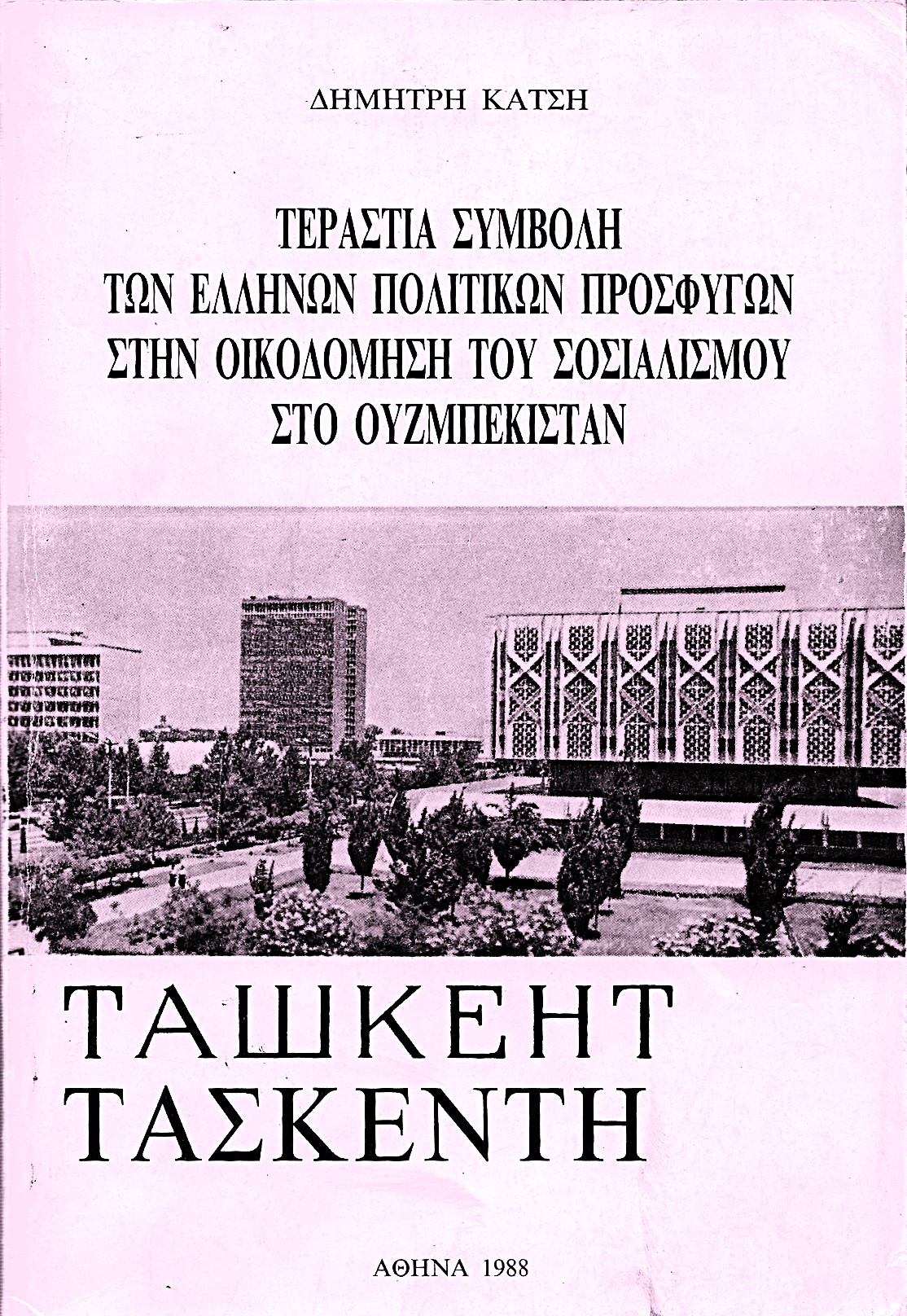-«Το έτος 1988 κυκλοφόρησε ένα βιβλίο του Δημήτρη Κατσή με τίτλο «Τεράστια συμβολή των Ελλήνων πολιτικών προσφύγων στην οικοδόμηση του Σοσιαλισμού», όπου στις 250 σελίδες αναφέρονται αναλυτικά στοιχεία και πληροφορίες για το πολιτικό άσυλο που βρήκαν στη Σοβιετική Ένωση και στη Δημοκρατία του Ουζμπεκιστάν χιλιάδες αγωνιστές του Δημοκρατικού Στρατού.