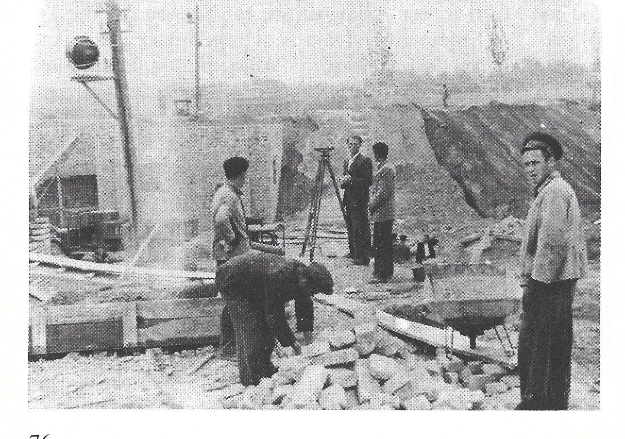 -«Ξεκίνησε στα μέσα του 1954 και για την αποπεράτωση τουλάχιστον του κεντρικού σταδίου αναφέρεται προς το τέλος του 1956».
