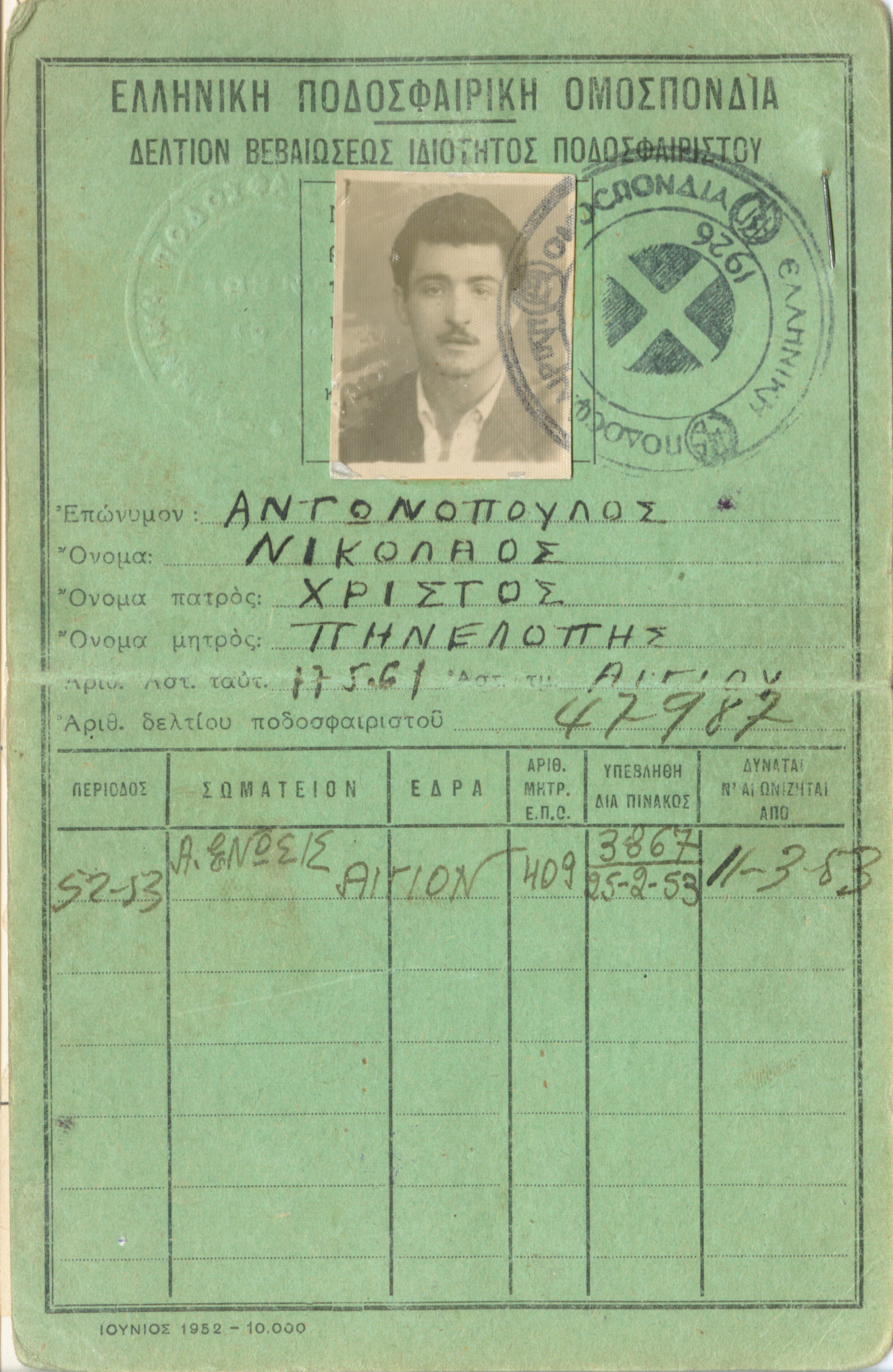 Δελτίο της ΑΕ Αιγίου το 1952/53