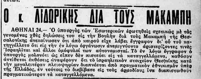 Η Μακαμπή και συνολικά η εβραϊκή κοινότητα διέψευσε σε όλους τους τόνους, ότι εκπρόσωποί της έπραξαν τα όσα τους καταλόγιζαν. Ήδη όμως είχε δοθεί το έναυσμα για επιδρομές, αρχικά εναντίον των γραφείων της Μακαμπή και με εντάσεις, που οδηγούσαν σε συνεχή επεισόδια. Το θέμα φτάνει στη Βουλή όπου καταγγέλλονται τα επεισόδια και γίνονται αποδεκτές οι διαψεύσεις της εβραϊκής κοινότητας για τα όσα της καταλογίζουν.