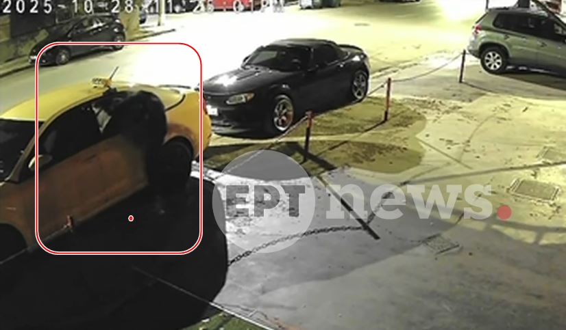 Στο περιστατικό που σημειώθηκε τα ξημερώματα της περασμένης Τετάρτης στην οδό 28ης Οκτωβρίου διακρίνεται ο δράστης κρατώντας ένα αντικείμενο να βγάζε, μέσα σε ελάχιστα δευτερόλεπτα, το πίσω τζάμι από το επαγγελματικό όχημα. Έπειτα αφαιρεί και έτερο τζάμι, από το οποίο εισέρχεται μέσα και αφαιρεί ότι πολύτιμα αντικείμενα και χρήματα έχει αφήσει ο οδηγός.
