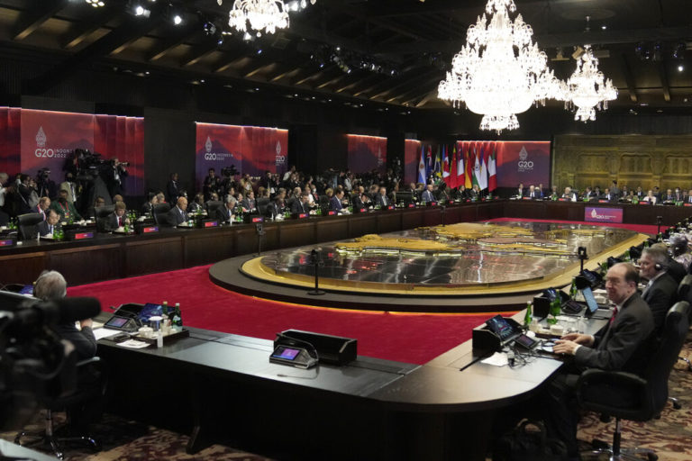 Ένα σχέδιο δήλωσης των ηγετών της Ομάδας των 20 μεγάλων οικονομιών που συζητείται, απηχεί την καταδίκη του πολέμου της Ρωσίας κατά της Ουκρανίας από τα Ηνωμένα Έθνη, αναγνωρίζοντας παράλληλα διαφορετικές απόψεις μεταξύ των μελών. Η προσεκτική διατύπωση της δήλωσης αντανακλά τις εντάσεις που επικρατούν στη σύνοδο, στην οποία συμμετέχουν ηγέτες από τη Ρωσία και την Κίνα, καθώς και την πρόκληση που αντιμετωπίζουν οι ΗΠΑ και οι σύμμαχοί τους να απομονώσουν την κυβέρνηση του Ρώσου προέδρου Βλαντίμιρ Πούτιν, καθώς ορισμένα έθνη προσπαθούν να αποφύγουν να εμπλακούν στους ανταγωνισμούς μεταξύ των μεγάλων δυνάμεων.