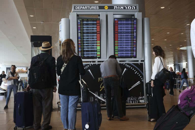 Περίπου 70.000 επιβάτες βρίσκονται στο αεροδρόμιο του Τελ Αβίβ, με πολλούς να προσπαθούν να προλάβουν τις τελευταίες πτήσεις να φύγουν από το Ισραήλ, καθώς πληθαίνει ο αριθμός των αεροπορικών εταιρειών που αναστέλλουν τις επιβατικές και εμπορικές πτήσεις προς και από το Τελ Αβίβ, λόγω των φόβων που προκαλεί η ολοένα κλιμακούμενη κατάσταση στη Μέση Ανατολή, σύμφωνα με ισραηλινά μέσα ενημέρωσης.