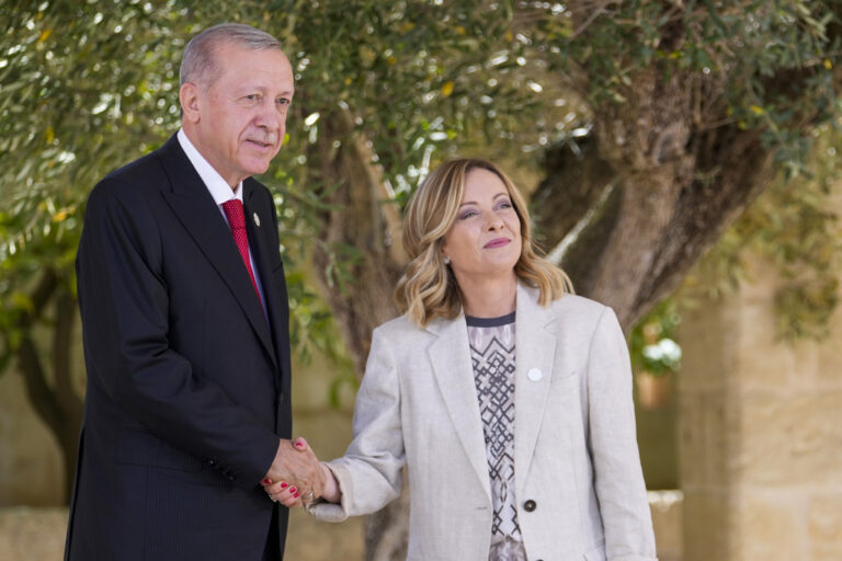Μελόνι και Ερντογάν, τέλος, «αντάλλαξαν απόψεις σχετικά με την κατάσταση των Σύρων προσφύγων στην περιοχή και με το πώς μπορεί να συνεχιστεί η παροχή στήριξης στις προσπάθειες της Ουκρανίας για μια δίκαιη και διαρκή ειρήνη».