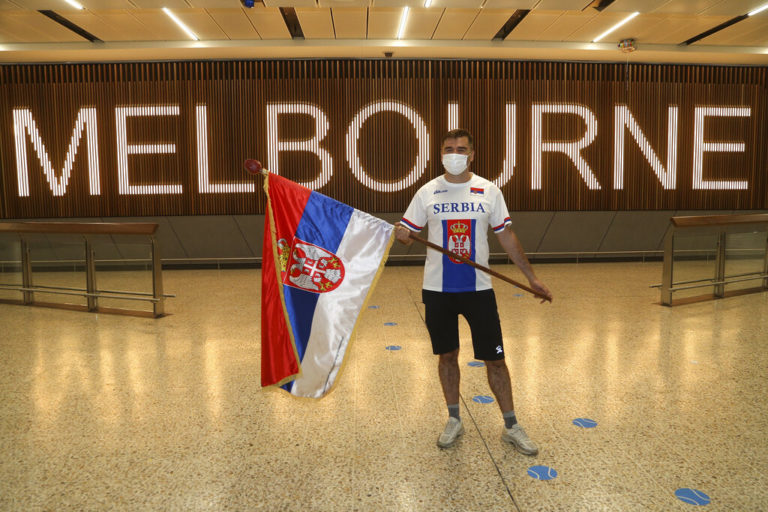 Ο Τζόκοβιτς προσγειώθηκε στο αεροδρόμιο Tullamarine της Μελβούρνης την Τετάρτη γύρω στις 11:30 μ.μ. τοπική ώρα μετά από πτήση 14 ωρών από το Ντουμπάι.