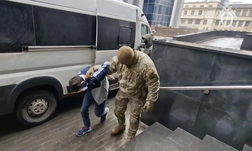 Βίντεο που έδωσε στη δημοσιότητα η Ερευνητική Επιτροπή της Ρωσικής Ομοσπονδίας, δείχνει ύποπτους της επίθεσης στο συναυλιακό χώρο με αποτέλεσμα το μακελειό στη Μόσχα, να οδηγούνται με δεμένα μάτια σε ένα κτίριο για ανάκριση.