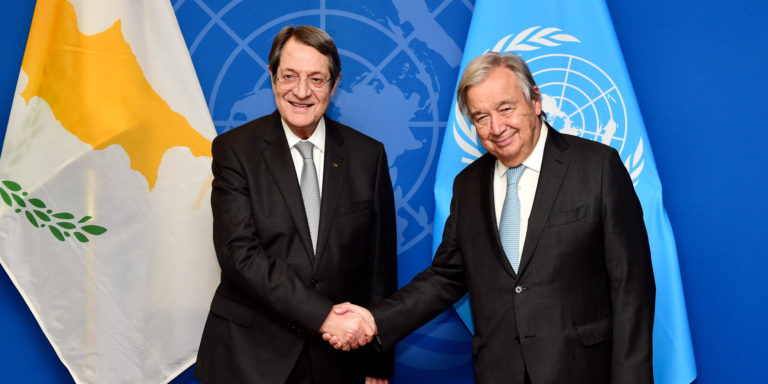 Συνάντηση με τον Γενικό Γραμματέα των Ηνωμένων Εθνών Αντόνιο Γκουτέρες είχε ο Πρόεδρος της Κυπριακής Δημοκρατίας Νίκος Αναστασιάδης, στο Γραφείο του ΓΓ στη Γενική Γραμματεία των ΗΕ, στη Νέα Υόρκη.