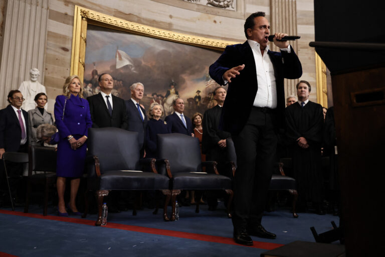 Ο Κρίστοφερ Μάτσιο, ερμήνευσε το τραγούδι για την Αμερική ενώ στην αίθουσα έμπαινε ο απερχόμενος πρόεδρος των ΗΠΑ Τζο Μπάιντεν και η Κάμαλα Χάρις.