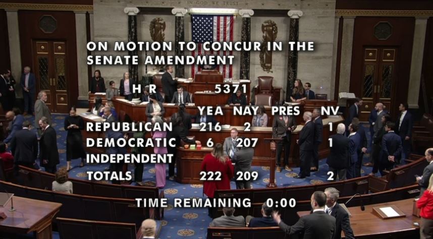 Νωρίτερα η Βουλή των Αντιπροσώπων των Ηνωμένων Πολιτειών ενέκρινε, νομοθετική πρόταση που προωθεί τον τερματισμό της ιστορικά μακροβιότερης – διάρκειας 43 ημερών – αναστολής λειτουργίας της ομοσπονδιακής κυβέρνησης. με 222 ψήφους υπέρ και 209 κατά.