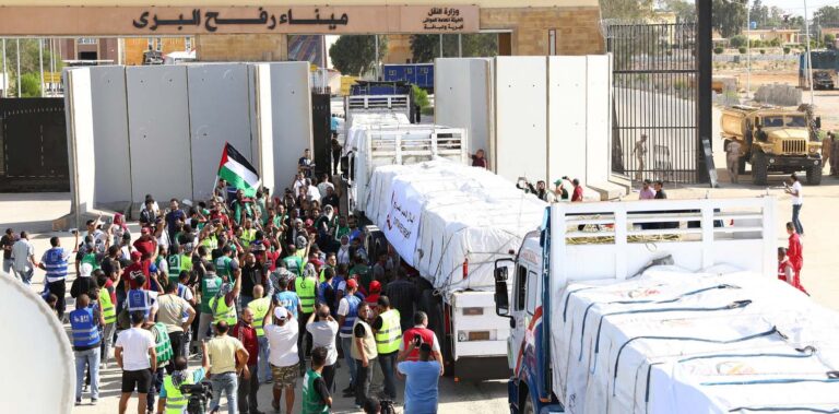 Κατά τους αριθμούς της ΜΚΟ, μόλις 2.874 φορτηγά εισήλθαν στον θύλακο τον Φεβρουάριο, με άλλα λόγια «μόνο το 20% της καθημερινής βοήθειας» που έφθανε εκεί πριν από την 7η Οκτωβρίου.