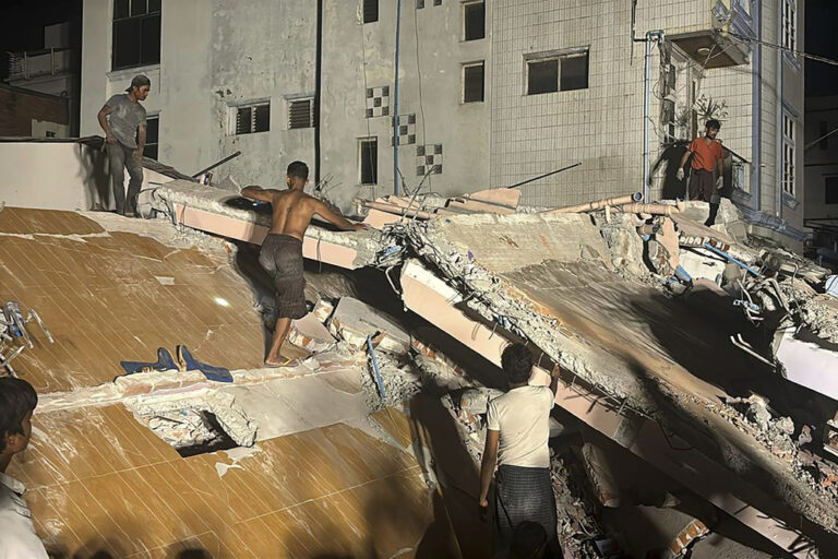 Μάχη με τον χρόνο δίνουν οι διασώστες σε ένα λύκειο που κατέρρευσε στα προάστια της Μανταλέι