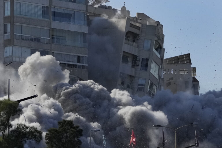 Είδαμε εικόνες κατάρρευσης πολυκατοικιών στα νότια προάστια της Βηρυτού, με τον αριθμό των νεκρών να αυξάνεται.