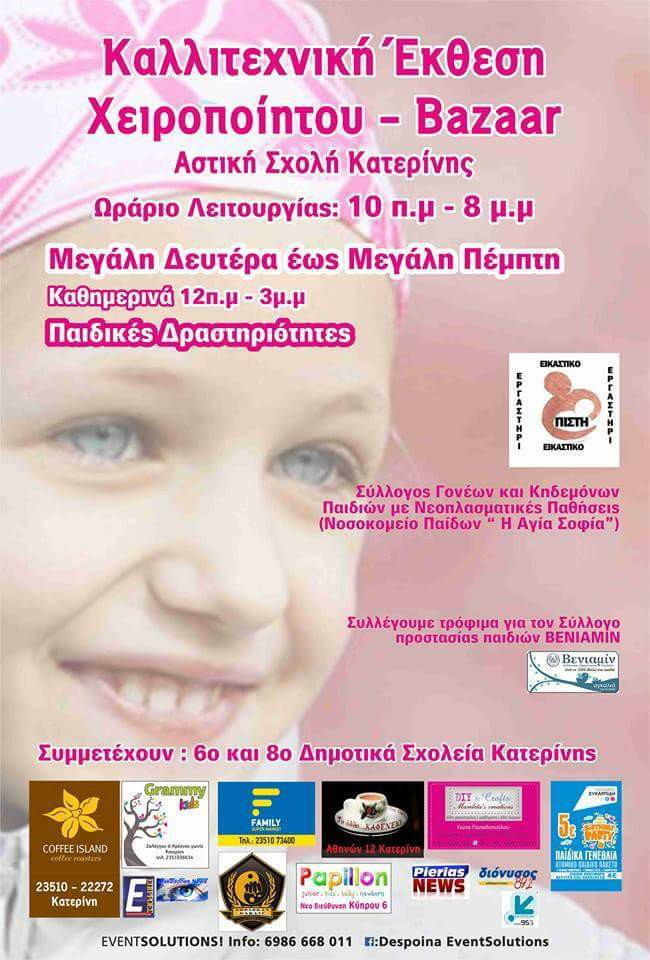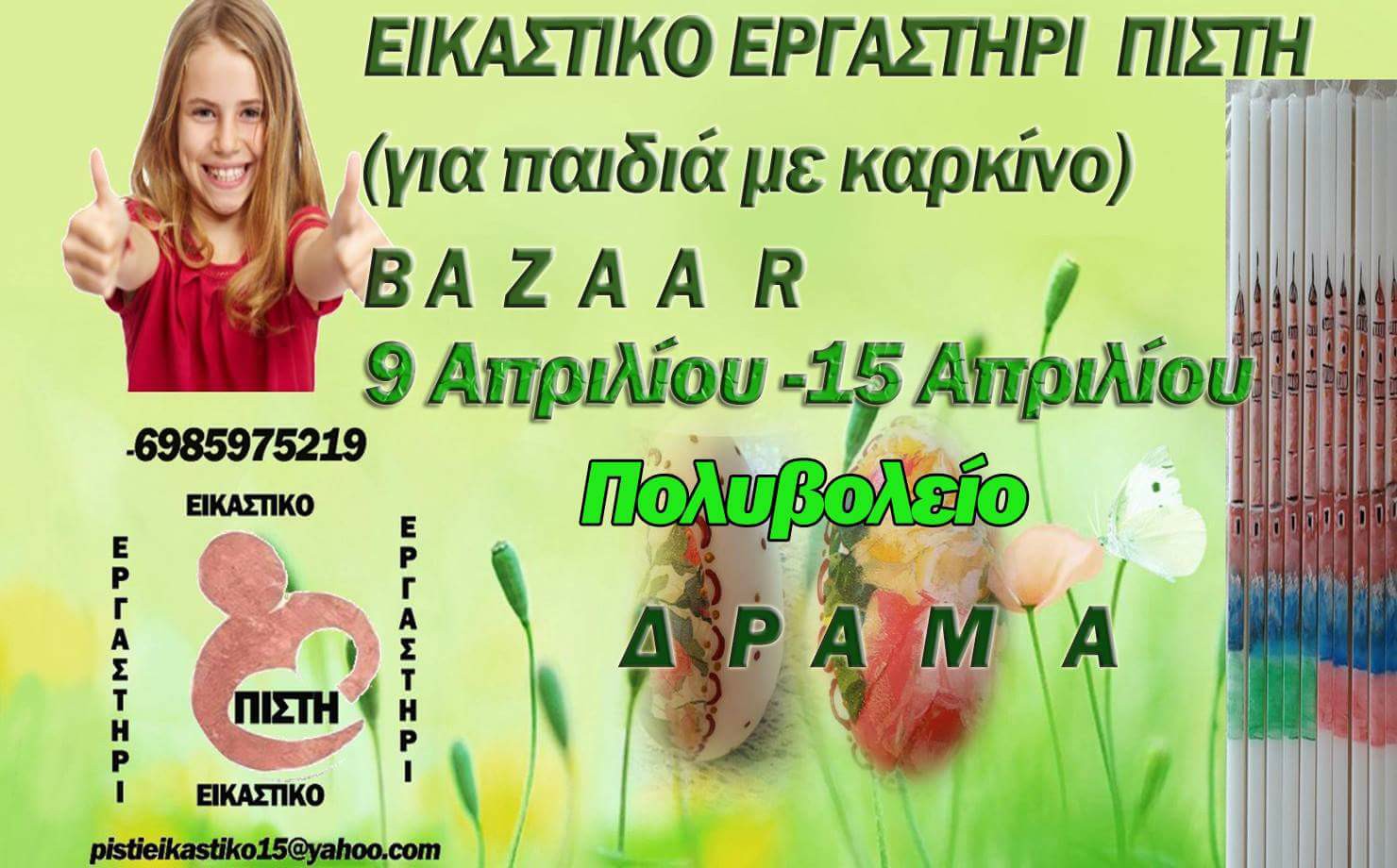 Mε πολλά μπαζάρ σε διάφορες πόλεις της χώρας, “Η ΠΙΣΤΗ”, ο Σύλλογος Γονέων & Κηδεμόνων Παιδιών με Νεοπλασματικές Παθήσεις, καλεί κάθε ενδιαφερόμενο/η να συμβάλλει στην οικονομική στήριξη του έργου του.
