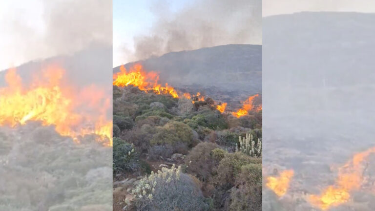 Ακόμη δεν ρευματοδοτηθεί η βόρεια πλευρά της Αμοργού, σε συνέχεια της φωτιάς που ξέσπασε στο νησί.
