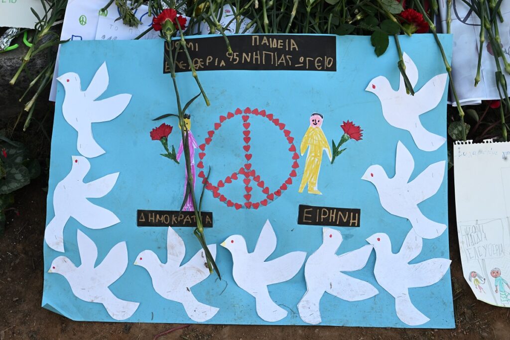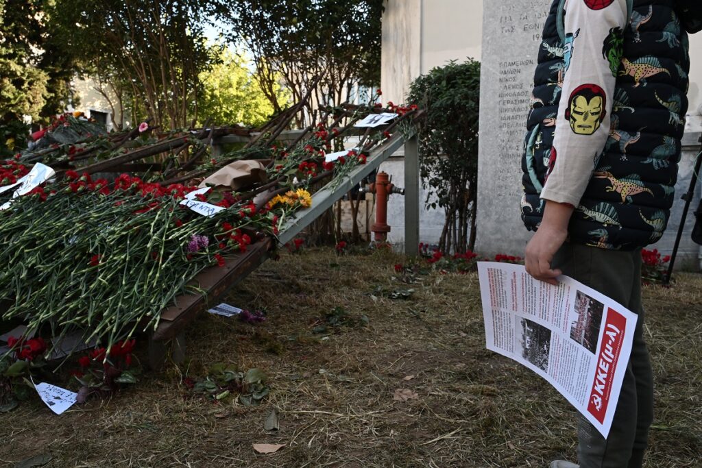 Άνθρωποι όλων των ηλικιών, ακόμη και μικρά παιδιά μπήκαν στο προαύλιο του εκπαιδευτικού ιδρύματος, εκεί όπου πριν από 50 χρόνια χιλιάδες φοιτητές και πολίτες έζησαν την εξέγερση.