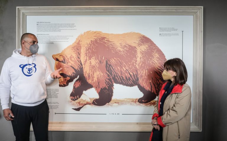 Ο διευθυντής του “Αρκτούρου” Αλέξανδρος Καραμανλίδης ξενάγησε την Πρόεδρο της Δημοκρατίας στο Περιβαλλοντικό Κέντρο και την ενημέρωσε για τη ζωή και την προστασία της αρκούδας και τις πληροφορίες που παρέχονται σε επισκέπτες και σε μαθητές που έρχονται στο Κέντρο με οργανωμένες εκδρομές.