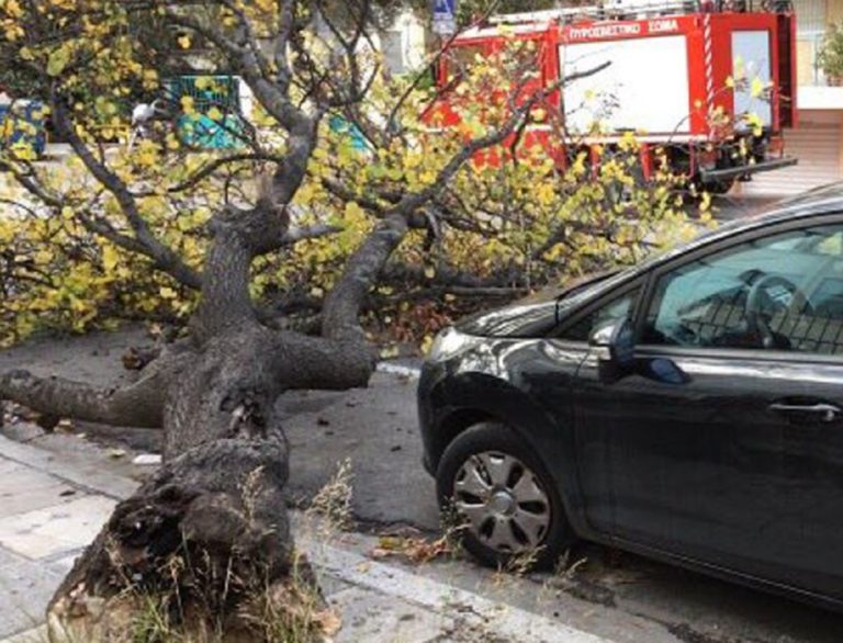 Άγιο είχαν δύο αστυνομικοί στη Νέα Ιωνία του Βόλου, όταν εκριζώθηκε λόγω των ισχυρών ανέμων ένα δέντρο και έπεσε στο περιπολικό που επέβαιναν και βρισκόταν εν κινήσει.