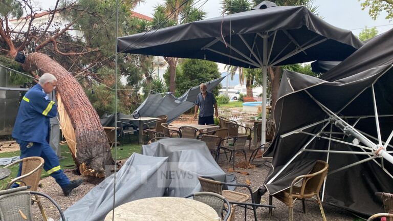 Χρειάστηκε μάλιστα και η συνδρομή της Πυροσβεστικής για να απεγκλωβιστεί, χωρίς ευτυχώς κανείς να τραυματιστεί. Σημαντικές επίσης υλικές ζημιες από πτώσεις δέντρων σημειώθηκαν και στα καταστήματα υγειονομικού ενδιαφέροντος στο πάρκο του λιμενικού, πλησίον της γεφυροπλάστιγγας.