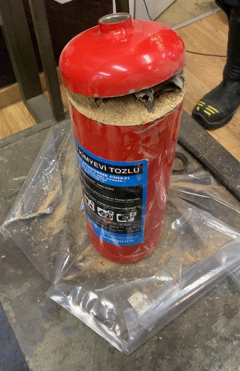 Εντός του σάκου υπήρχαν δύο πυροσβεστήρες που περιείχαν ηρωίνη καθαρού βάρους 9.940 γραμμ., που κατείχαν από κοινού οι ανωτέρω με σκοπό τη διακίνηση.