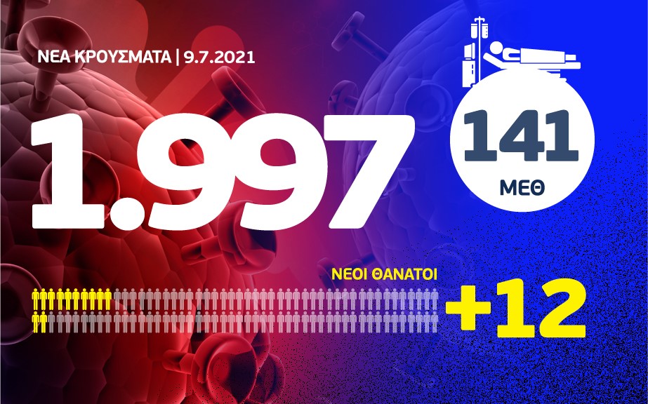 Όπως ανακοίνωσε ο ΕΟΔΥ: «Τα νέα εργαστηριακά επιβεβαιωμένα κρούσματα της νόσου που καταγράφηκαν τις τελευταίες 24 ώρες είναι 1.997, εκ των οποίων 5 εντοπίστηκαν κατόπιν ελέγχων στις πύλες εισόδου της χώρας.