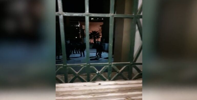 «Λοιπόν παιδιά θέλουμε λίγο τη συνεργασία σας. Θα γίνει όπως καταλαβαίνετε μία εκκένωση του χώρου και θέλουμε τη συνεργασία σας, εντάξει; Περιμένετε λίγο εδώ πέρα όλοι, μαζέψτε λίγο σιγά σιγά τα πράγματά σας, ό,τι έχει ο καθένας, πάρτε τα. Και νεαρέ, αν μπορείς, κλείσε το κινητό, δεν υπάρχει κανένας λόγος. Εντάξει; Κλείστο σε παρακαλώ πολύ».