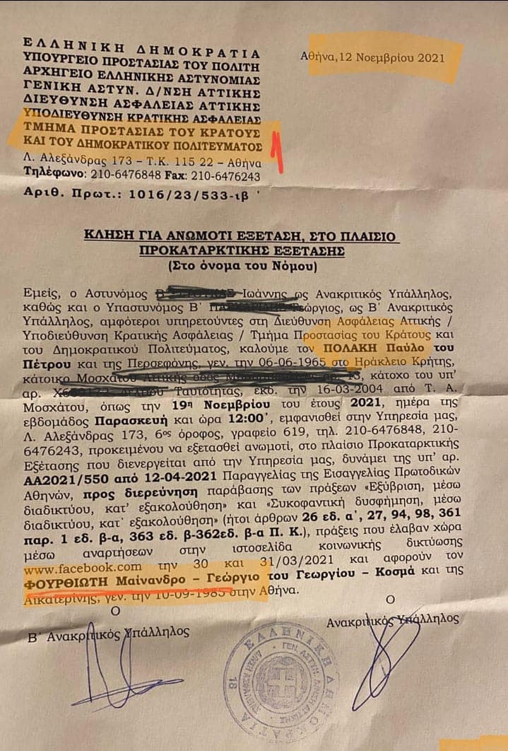 2) Ζήτω την παραδειγματική τιμωρία τόσο του Εισαγγελέα που διέταξε αυτήν την προανάκριση, όσο και των υπαλλήλων που υπέγραψαν την κλήση σε ανωμοτί κατάθεση.
