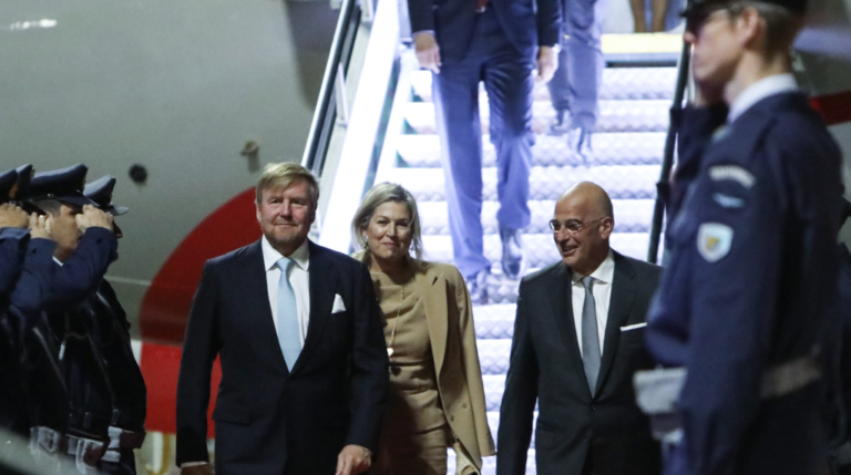 Ο υπουργός Εξωτερικών Νίκος Δένδιας υποδέχθηκε το βράδυ της Κυριακής στο αεροδρόμιο «Ελευθέριος Βενιζέλος» στην Αθήνα, το βασιλικό ζεύγος της Ολλανδίας, τον Βασιλιά Γουλιέλμο-Αλέξανδρο και τη Βασίλισσα Μάξιμα, οι οποίο πραγματοποιούν επίσκεψη στην Ελλάδα έως τις 2 Νοεμβρίου, έπειτα από πρόσκληση της Προέδρου της Δημοκρατίας Κατερίνας Σακελλαροπούλου.