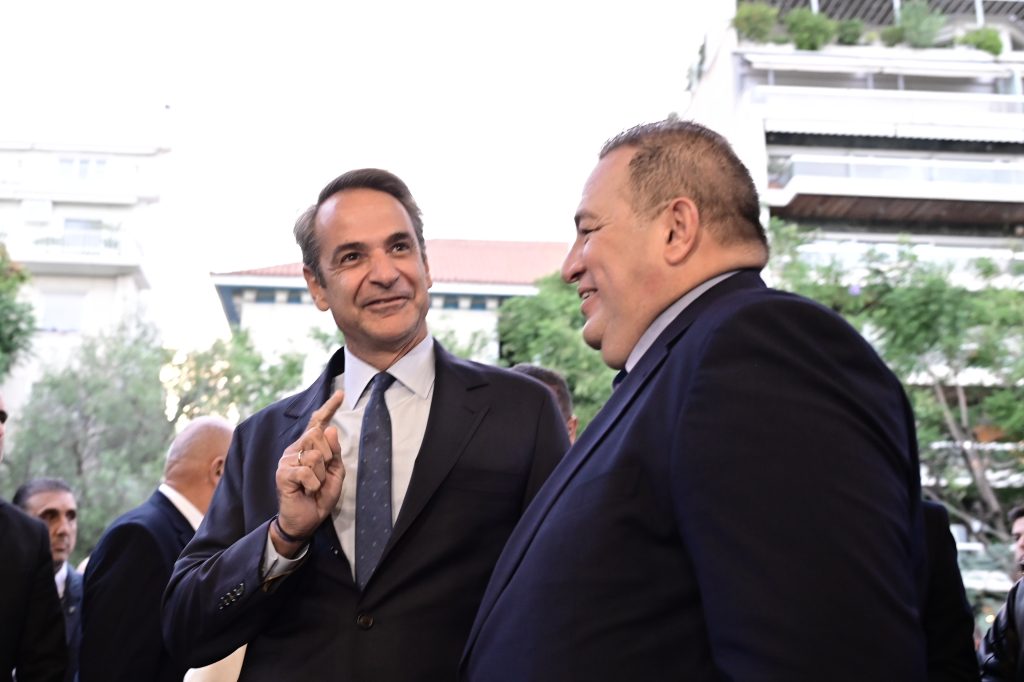 Ο Κυριάκος Μητσοτάκης μάλιστα είχε μία θερμή χειραψία με τον Κώστα Καραμανλή.