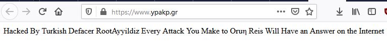Το μήνυμα που άφησαν γράφει «Παραβιάστηκε από τον Τούρκο βάνδαλο RootAyyildiz Κάθε επίθεση που κάνετε στο Ορούτς Ρέις θα βρίσκει απάντηση στο Διαδίκτυο »