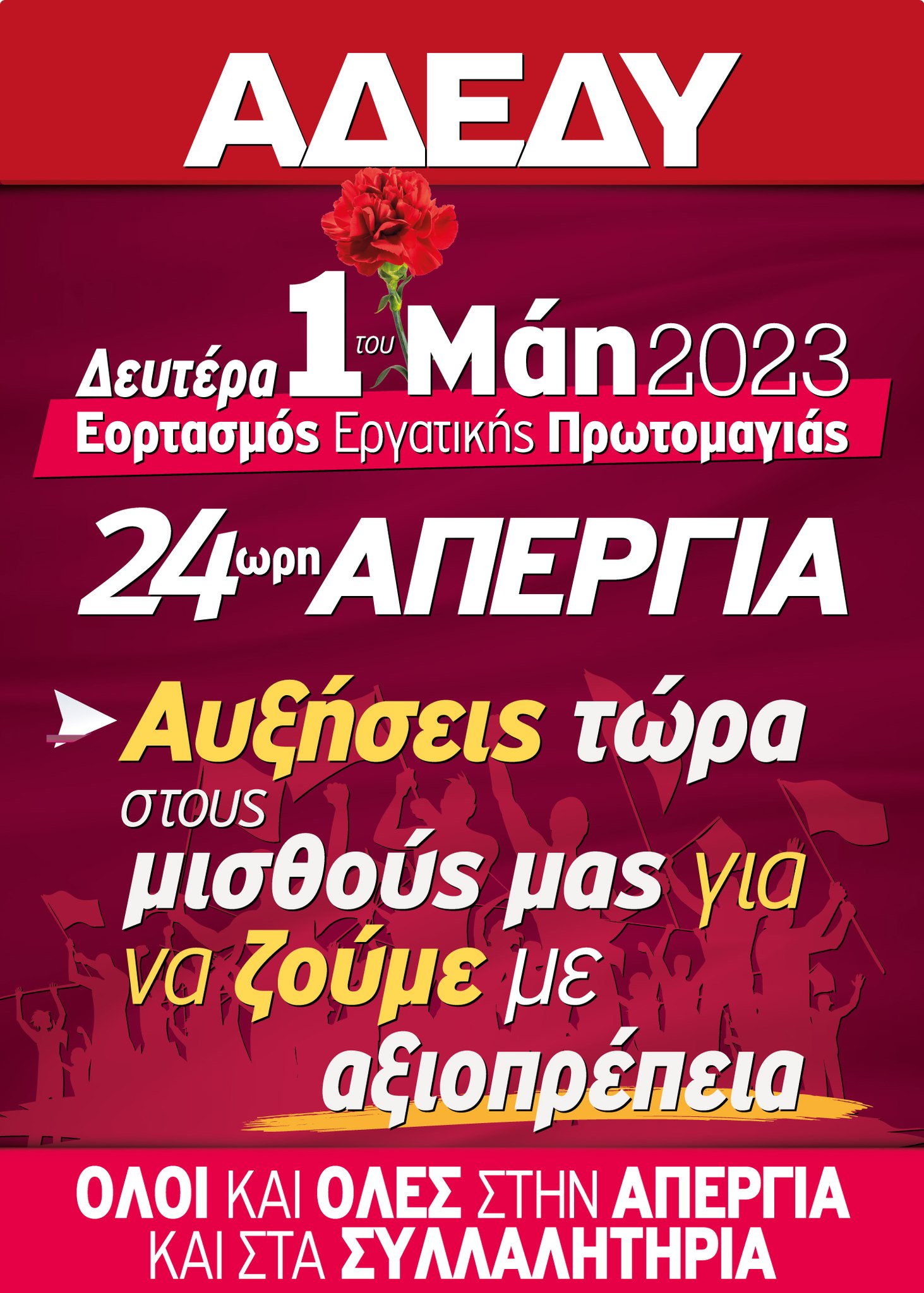 Η Πρωτομαγιά του 2023 βρίσκει τις εργαζόμενες και τους εργαζόμενους της χώρας αντιμέτωπους με την ακρίβεια, την ανεργία, την κοινωνική φτώχεια, τον περιορισμό εργασιακών δικαιωμάτων, τις ανισότητες, την επισφάλεια και την ανασφάλεια στους χώρους εργασίας. Είναι εκείνοι που έχουν σηκώσει στις πλάτες τους εδώ και χρόνια δυσβάστακτα βάρη. Μετά τη σχεδόν 13ετή κρίση, η εργασία έχει υποστεί τα πάνδεινα: μειώσεις μισθών, κατάργηση συλλογικών συμβάσεων και αποδόμηση του εργατικού δικαίου, περιορισμό των μισθωτών που απολαμβάνουν συλλογική προστασία και κυρίως ανεργία, που ειδικά στους νέους έχουμε το θλιβερό προνόμιο να είμαστε οι πρωταθλητές στην Ευρώπη».