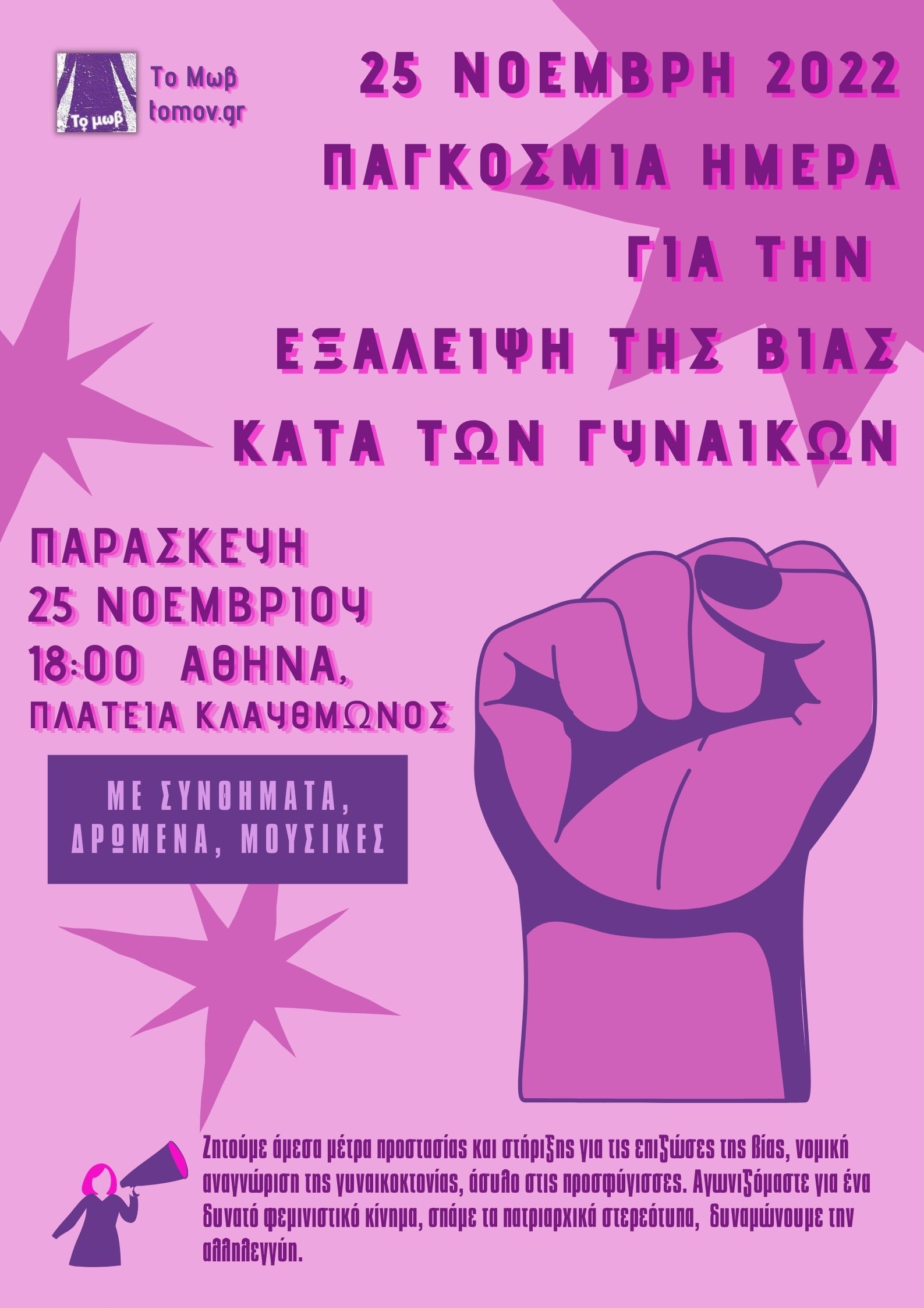 «Όπως κάθε χρόνο τέτοια ημέρα και μέχρι να επιτευχθεί ο στόχος της εξάλειψης της βίας κατά των γυναικών διαδηλώνουμε, συζητάμε, οργανωνόμαστε σε ολόκληρο τον κόσμο.