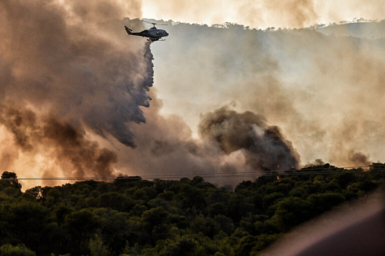 Μάχη με τις φλόγες συνεχίζουν να δίνουν πυροσβέστες, εθελοντές και κάτοικοι στα μέτωπα της φωτιάς. Νέες αναζωπυρώσεις παρατηρούνται γύρω από το Λουτράκι, ενώ ενεργά μέτωπα υπάρχουν στη Βλυχάδα και την Ρόδο. Ξεκίνησαν να επιχειρούν και τα εναέρια μέσα, ενώ με το πρώτο φως εντάθηκε η ένταση των ανέμων, δυσκολεύοντας το έργο των πυροσβεστών.