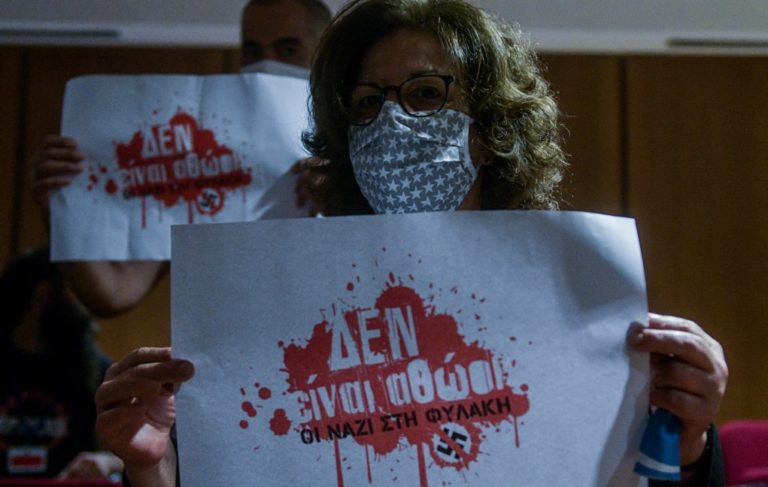 Όπως αναφέρει η ΑΔΕΔΥ: «Με μια ιστορική απόφασή της η ελληνική δικαιοσύνη έκρινε στις 7 του Οκτώβρη του 2020 τη Χρυσή Αυγή ως εγκληματική οργάνωση και καταδίκασε γι’ αυτό 7 κορυφαία στελέχη της, σε πολύχρονη φυλάκιση, και συνολικά 15 από τους 17 κατηγορούμενους.