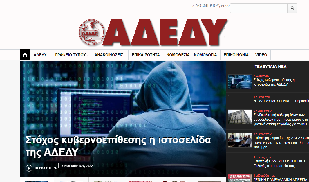 Λίγες ημέρες πριν την 24ωρη γενική απεργία σε δημόσιο και ιδιωτικό τομέα, την Παρασκευή 4 Νοεμβρίου, παρουσιάστηκε πρόβλημα με τις δημοσιεύσεις στην ιστοσελίδα της Α.Δ.Ε.Δ.Υ. μετά από κακόβουλη παρέμβαση (hacking) από αυτοματοποιημένο λογισμικό (bot). Το αρμόδιο τμήμα προέβη σε όλες τις απαραίτητες ενέργειες και άμεσα αφαιρέθηκαν οι κακόβουλες δημοσιεύσεις.