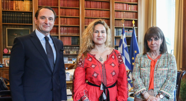 Η Πρόεδρος της Δημοκρατίας Κατερίνα Σακελλαροπούλου δέχθηκε στο Προεδρικό Μέγαρο την Ουκρανή πρόσφυγα Nataliya Skiba, συνοδευόμενη από τον Ουκρανό πρέσβη Sergii Shutenko.