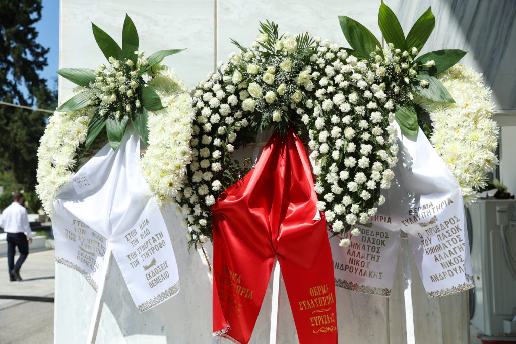 Στεφάνια απέστειλαν μεταξύ άλλων, ο πρόεδρος του ΠΑΣΟΚ Νίκος Ανδρουλάκης, το τμήμα Πολιτικής Επιστήμης και Δημόσιας Διοίκησης του ΕΚΠΑ, το Ipsos – Opinion, η εφημερίδα «Αυγή» και ο ραδιοφωνικός σταθμός «Στο Κόκκινο» του οποίου ήταν συνεργάτης, οι εκδόσεις «Θεμέλιο», το Ινστιτούτο Πουλαντζά.