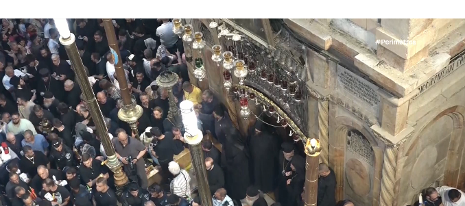 Ολοκληρώθηκε στα Ιεροσόλυμα η τελετή Αφής του Αγίου Φωτός στον Πανάγιο Τάφο. Η πόρτα σφραγίστηκε σύμφωνα με το τυπικό, και ο Πατριάρχης Ιεροσολύμων εβγαλε την αρχιερατική του στολή και έμεινε μόνο με το λευκό του στοιχείο. Πριν σφραγιστεί ο Πανάγιος Τάφος, είχε ελεγχθεί για να πιστοποιηθεί ότι δεν υπάρχει μέσα τίποτα. Στη συνέχεια, ο Πατριάρχης εξήλθε από το Ιερό Κυβώριο κρατώντας 2 δεσμίδες από 33 κεριά, όσα και τα χρόνια του Ιησού, και μοίρασε το Άγιο Φως στους χιλιάδες πιστούς που βρίσκονται στο ναό.