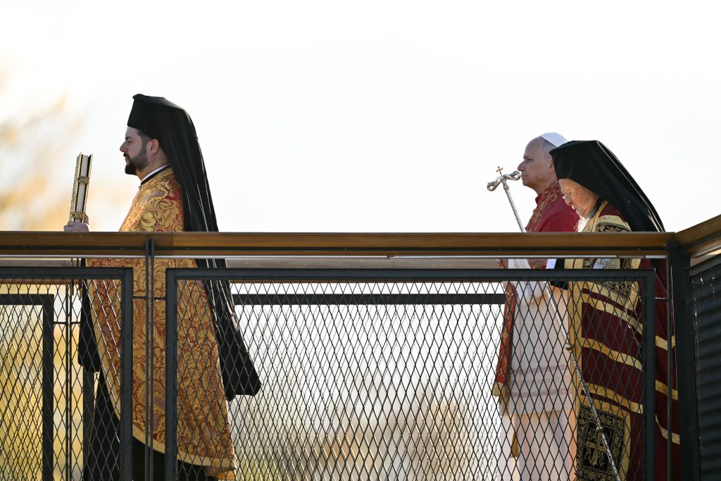 Ο Πάπας Λέων ΙΔ΄ και ο Οικουμενικός Πατριάρχης Βαρθολομαίος Α’, αποχωρούν μετά από οικουμενική προσευχή στους αρχαιολογικούς χώρους των ανασκαφών της χριστιανικής Βασιλικής του Αγίου Νεοφύτου της βυζαντινής εποχής, στην Νίκαια της Τουρκίας. (AP Photo/Khalil Hamra)Ο Πάπας Λέων ΙΔ΄ και ο Πατριάρχης Βαρθολομαίος Α΄ της Κωνσταντινούπολης αποχωρούν μετά τη συμμετοχή τους σε οικουμενική προσευχή κοντά στη βυθισμένη Βασιλική του Αγίου Νεοφύτου της βυζαντινής εποχής, στη λίμνη Ίζνικ. (Photo by Ozan KOSE / AFP)Ο Πάπας Λέων ΙΔ΄ και ο Οικουμενικός Πατριάρχης Βαρθολομαίος Α’, προέστησαν οικουμενικής προσευχής στους αρχαιολογικούς χώρους των ανασκαφών της χριστιανικής Βασιλικής του Αγίου Νεοφύτου της βυζαντινής εποχής(AP Photo/Khalil Hamra)