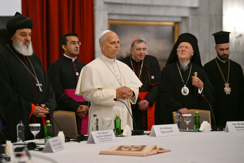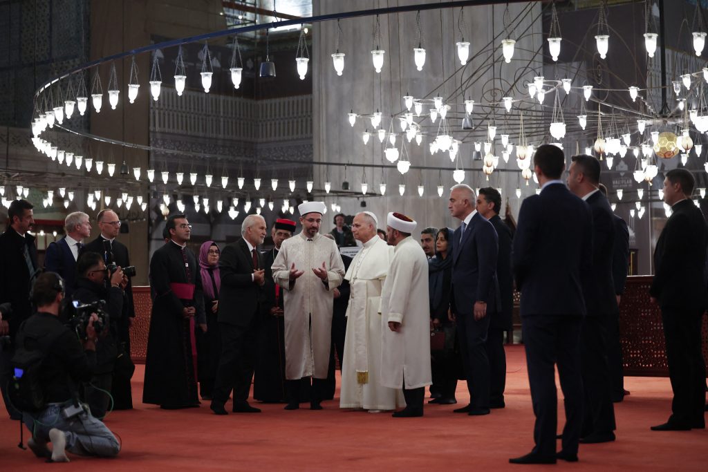 Ο Πάπας Λέων ΙΔ΄ επισκέπτεται το Τζαμί Σουλτάν Αχμέτ (Μπλε Τζαμί) στην Κωνσταντινούπολη (Photo by BERK OZKAN / AFP)Ο Πάπας Λέων ΙΔ΄ στέκεται ανάμεσα στον Πατριάρχη Μορ Ιγνάτιο Αφρέμ Β΄ (αριστερά) και τον Πατριάρχη Βαρθολομαίο Α΄ κατά την άφιξή του για ιδιωτική συνάντηση με θρησκευτικούς ηγέτες στην Συριακή Ορθόδοξη Εκκλησία Μορ Εφρέμ, στην Κωνσταντινούπολη (Photo by Andreas SOLARO / AFP)Ο Πάπας Λέων ΙΔ΄ (στο κέντρο) φτάνει για τη δοξολογία στην Πατριαρχική Εκκλησία του Αγίου Γεωργίου, στην Κωνσταντινούπολη (Photo by Ozan KOSE / AFP)