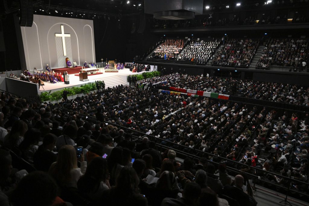 Η σημερινή μέρα έκλεισε με τη θεία λειτουργία στον κλειστό χώρο εκδηλώσεων «Volkswagen Arena» της Κωνσταντινούπολης. Εκεί βρέθηκαν 4.000 άνθρωποι, όπως μεταδίδει η απεσταλμένη του ΕΡΤnews, Βαλέρια Δολαψάκη.