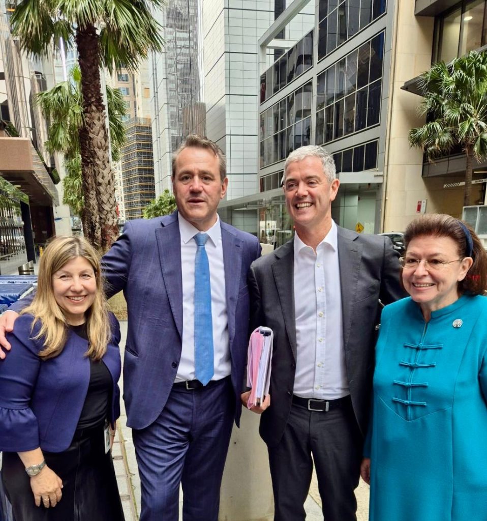 Συνάντηση εργασίας με τον υπουργό της κυβέρνησης της Νέας Νότιας Ουαλίας αρμόδιο για την Πολυπολιτισμικότητα, τη Χωροταξία, την Ιδιοκτησία, την Εργασία, τον Τουρισμό και Αθλητισμό Steve Kamper καθώς και με την υπουργό Βιομηχανίας, Εργασιακής Υγείας και Ασφάλειας Sophie Kotsis, είχε η υπουργός Πολιτισμού Λίνα Μενδώνη, παρουσία του Αρχιεπισκόπου Αυστραλίας κ. κ. Μακαρίου.
