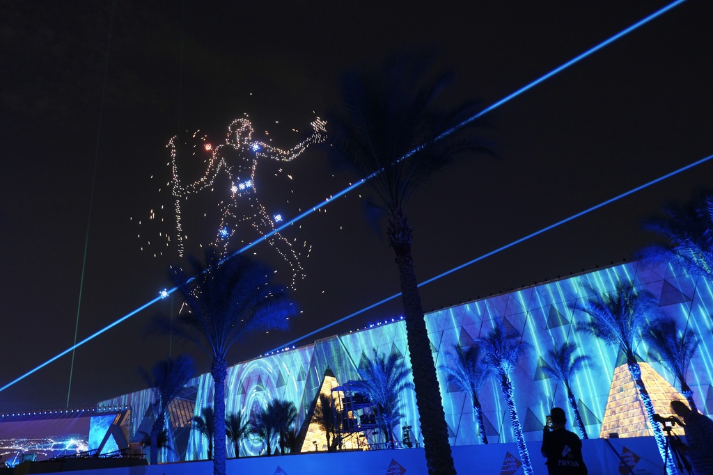 Σε ένα φαντασμαγορικό υπερθέαμα, ο νυχτερινός ουρανός φωτίζεται από εκατοντάδες πυροτεχνήματα, ενώ drone σχηματίζουν φιγούρες αιγυπτιακών θεοτήτων και βασιλέων. Έντονο ήταν το διαπολιτισμικό, αλλά και το θρησκευτικό στοιχείο στην τελετή, η οποία είχε και ελληνικό άρωμα με τις συμμετοχές του Έλληνα βιολιστή Κώστα Παναγιωτίδη, Κορυφαίου Α’ στην ορχήστρα της Εθνικής Λυρικής Σκηνής και της Ελληνίδας πρίμα μπαλαρίνας της Εθνικής Όπερας του Καΐρου Αντιγόνης Τσιούλη. Το μεγαλύτερο αρχαιολογικό μουσείο στον κόσμο άνοιξε τις πύλες του έπειτα από 25 χρόνια εργασιών.