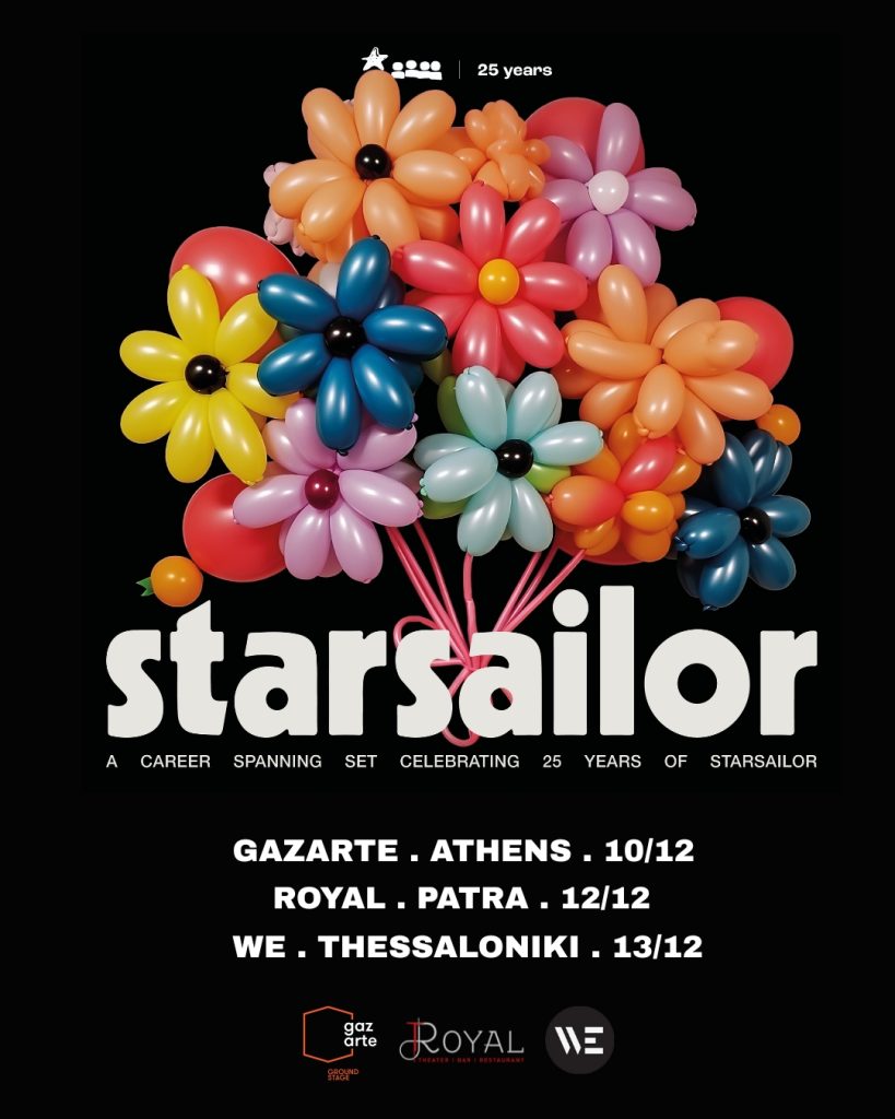 Οι Βρετανοί Starsailor επιστρέφουν στη χώρα μας, φέρνοντας μαζί τους έναν από τους πιο συναισθηματικούς και σταθερά αγαπημένους ήχους της βρετανικής indie σκηνής. Με αφορμή τη συμπλήρωση 25 χρόνων πορείας, το συγκρότημα δίνει μια σειρά επετειακών συναυλιών περνώντας και από την Ελλάδα, την Τετάρτη 10 και την Πέμπτη 11 Δεκεμβρίου στο Gazarte στην Αθήνα, την Παρασκευή 12 Δεκεμβρίου στο Royal στην Πάτρα και το Σάββατο 13 στον πολυχώρο WE στη Θεσσαλονίκη υποσχόμενοι ένα best-of setlist που θα διατρέξει ολόκληρη την ιστορία τους — από το θρυλικό Love Is Here έως το πρόσφατο Where the Wild Things Grow.