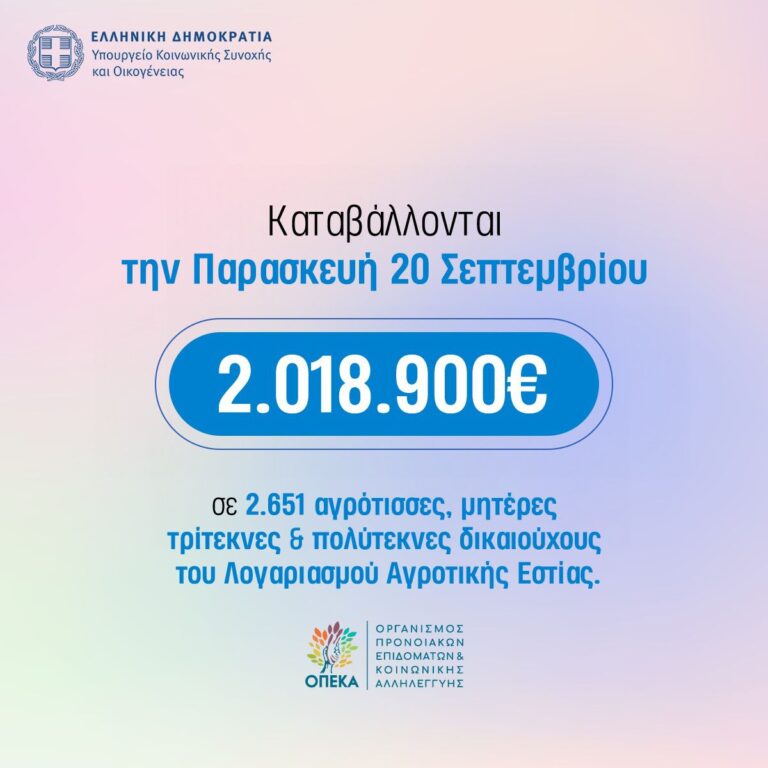 Πρόκειται για το οικονομικό βοήθημα σε τρίτεκνες και πολύτεκνες αγρότισσες μητέρες, συνταξιούχους ή ασφαλισμένες του e-ΕΦΚΑ(ΟΓΑ), οι οποίες δήλωσαν συμμετοχή στο Πρόγραμμα Παροχής Οικονομικών Βοηθημάτων του Λογαριασμού Αγροτικής Εστίας που χειρίζεται ο ΟΠΕΚΑ και πληρούσαν τις απαιτούμενες προϋποθέσεις.