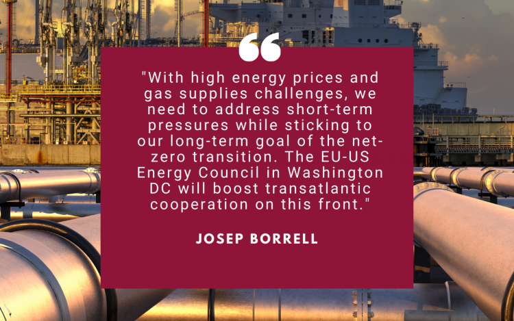 Οι ΗΠΑ είναι ήδη ο μεγαλύτερος προμηθευτής υγροποιημένου φυσικού αερίου (LNG) της Ευρώπης σημειώνει ο Ζοζέπ Μπορέλ σημειώνοντας ότι «εντείνουμε τη συνεργασία μας για να διασφαλίσουμε ότι οι προμήθειες φυσικού αερίου μας είναι ασφαλείς τους επόμενους μήνες». Τέλος, ο Ζοζέπ Μπορέλ αναφέρει ότι εκτός από τις ΗΠΑ γίνονται συνομιλίες με τη Νορβηγία, το Κατάρ, το Αζερμπαϊτζάν και την Αλγερία για την επέκταση προμηθειών LNG.