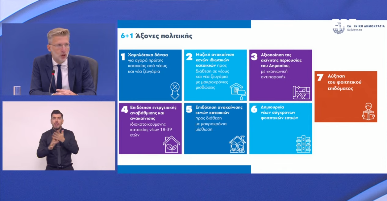 Μέτρα για τη στέγαση πολιτών μέχρι 39 ετών, φοιτητών και ευάλωτων νοικοκυριών ως «ανάχωμα» στις τιμές ενοικίων που έχουν εκτοξευθεί στα ύψη παρουσίασε η κυβέρνηση.