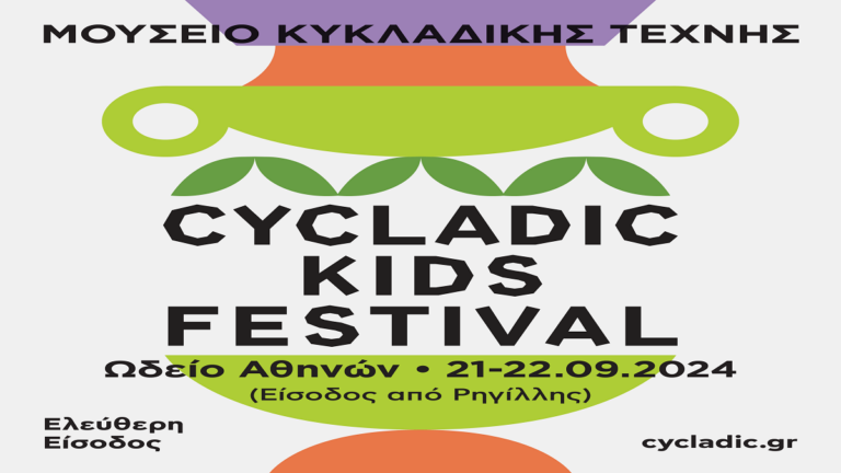 Το παιδικό Φεστιβάλ του Μουσείου Κυκλαδικής Τέχνης (ΜΚΤ) είναι και φέτος γεγονός. Το ΜΚΤ διοργανώνει το δεύτερο Cycladic Kids Festival στις 21 και 22 Σεπτεμβρίου στο Ωδείο Αθηνών, εντάσσοντας για πρώτη φορά δράσεις για παιδιά στον αρχαιολογικό χώρο του Λυκείου του Αριστοτέλη. Παιδιά και έφηβοι 2 έως 18 ετών καλούνται να συμμετέχουν και φέτος με ελεύθερη είσοδο, στο πιο δημιουργικό σαββατοκύριακο στο κέντρο της Αθήνας, όπως αναφέρουν οι διοργανωτές.