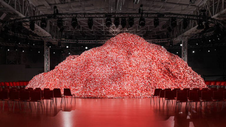 Η ιταλική επώνυμη εταιρεία παρουσίασε τη συλλογή Φθινόπωρο-Χειμώνας 2023 με φόντο πάνω από 200.000 κουτιά προφυλακτικών, υποδεικνύοντας τόσο τη θετικότητα του σεξ όσο και την επικείμενη συνεργασία με εταιρεία αντισυλληπτικών.